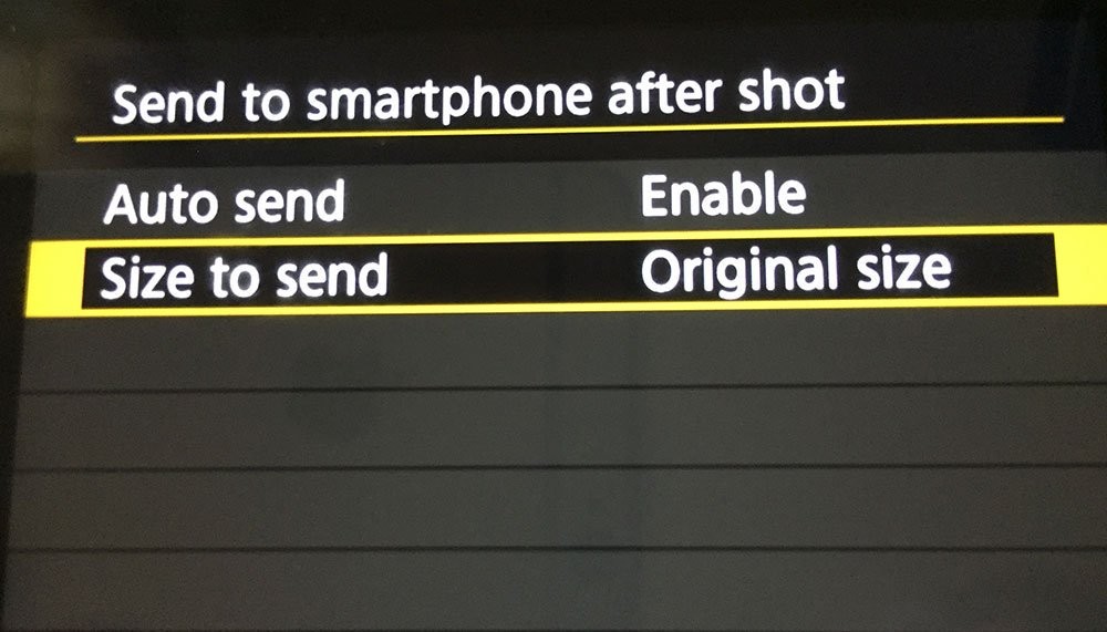 And enable "Send to smartphone after shot". Now every photo you take will be automatically be backed up to your smartphone! This feature great for instant sharing on social media and reviewing or editing your footage on a bigger screen. The downside is that this only works for images, not for video.